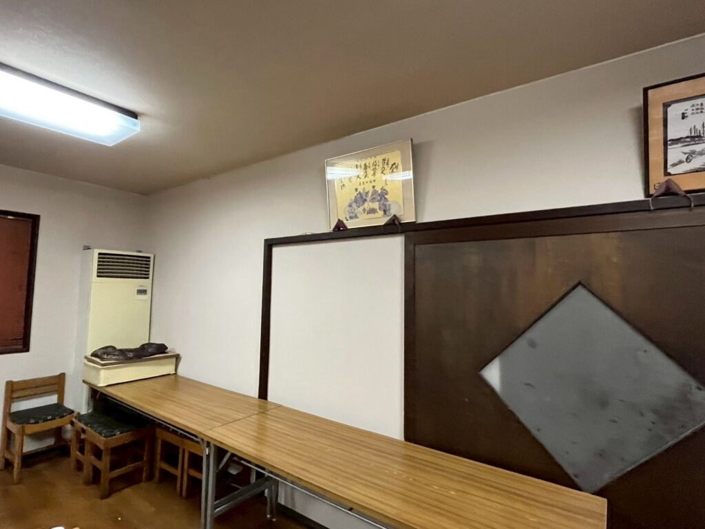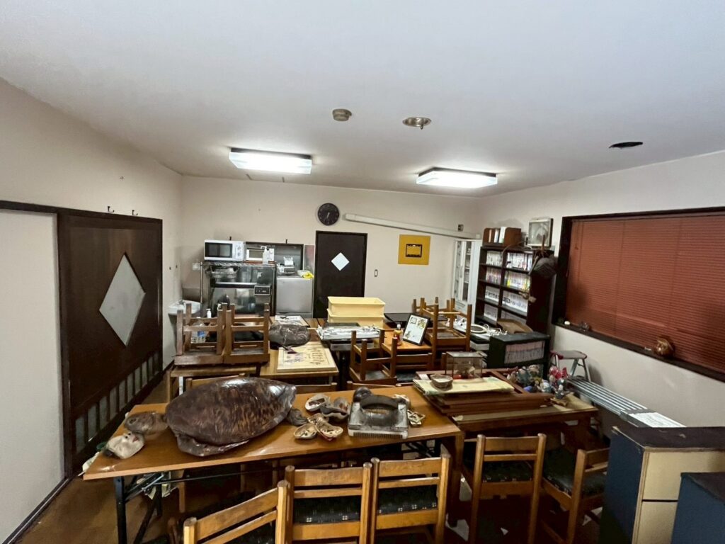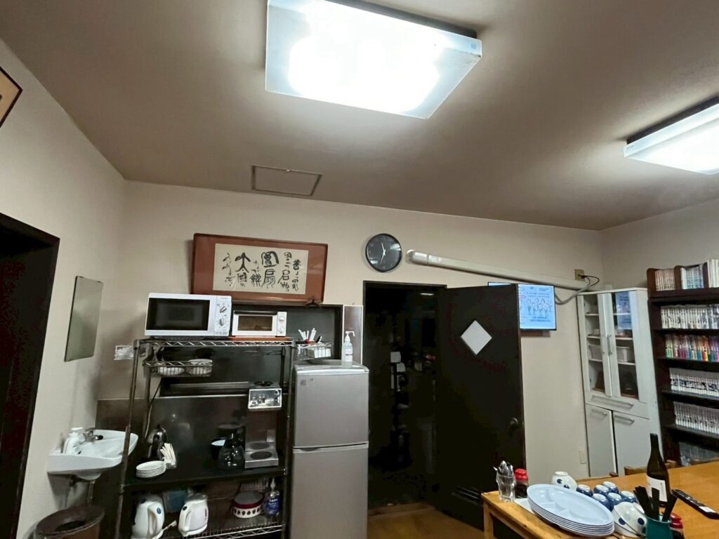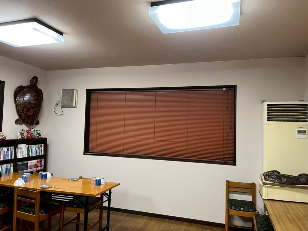 また、長年使用されてきた食堂のため、壁際には家具や収納が多く配置されており、クロスの貼り替え作業を行うには、十分なスペースを確保する必要がありました。