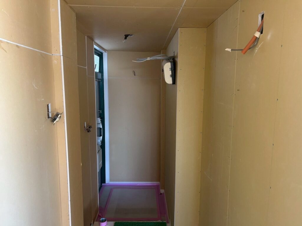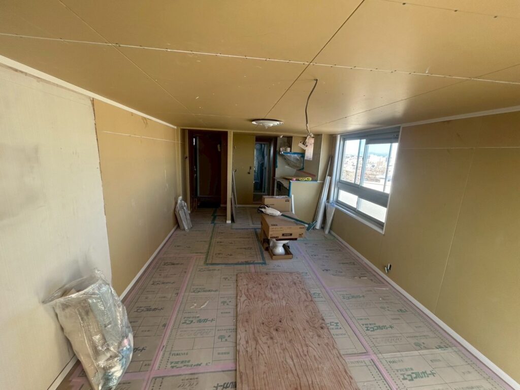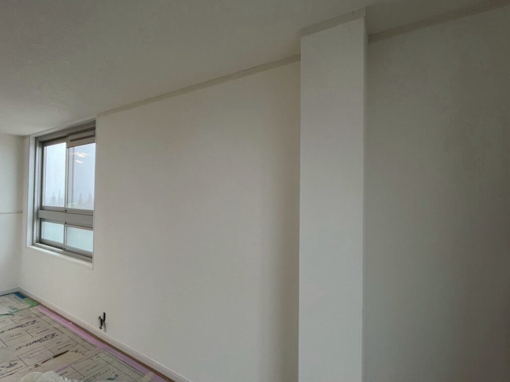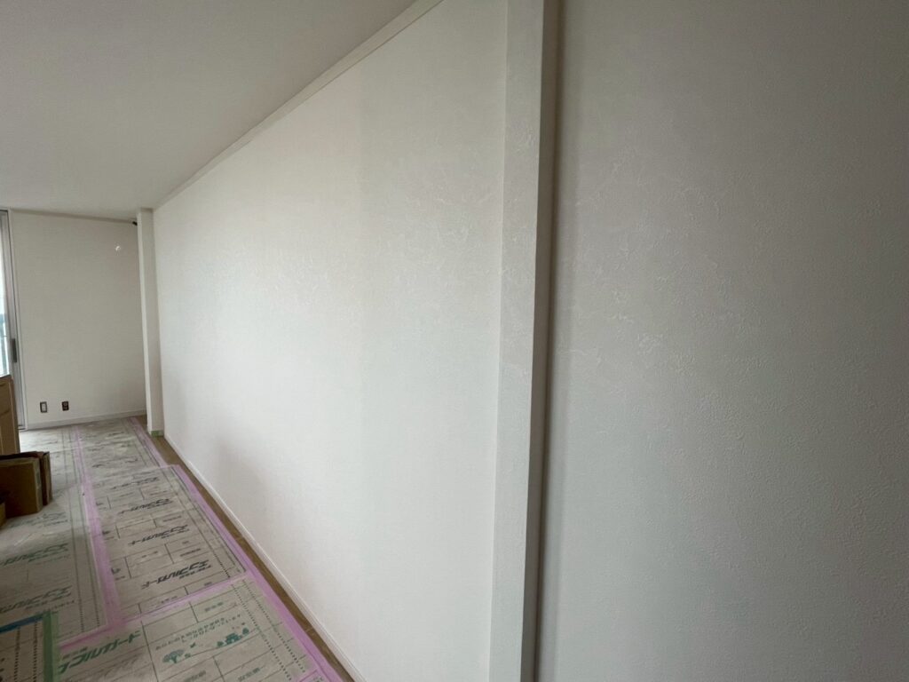 クロス施工後は、ボード素地の状態から一転、空間全体が明るく整った印象へと仕上がりました。