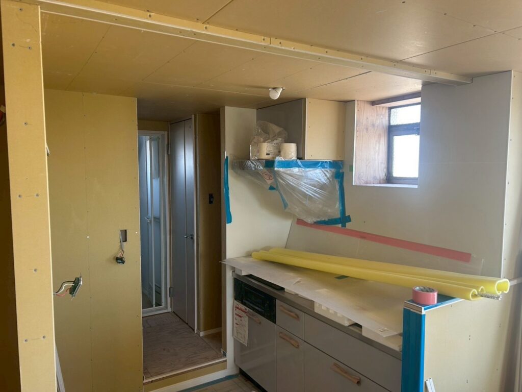 今回ご紹介するのは、新たに施工された石膏ボード面へのクロス貼り工事を行いました。