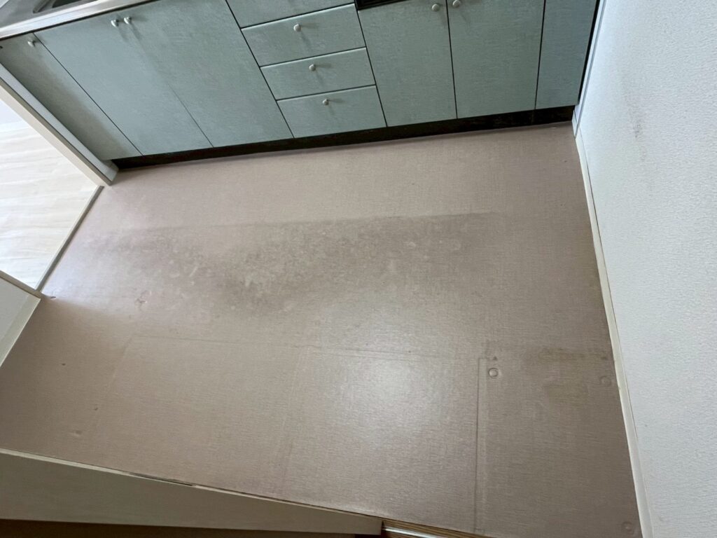 床も既存CFを撤去後、下地を整えてから新規クッションフロアへ張り替え。