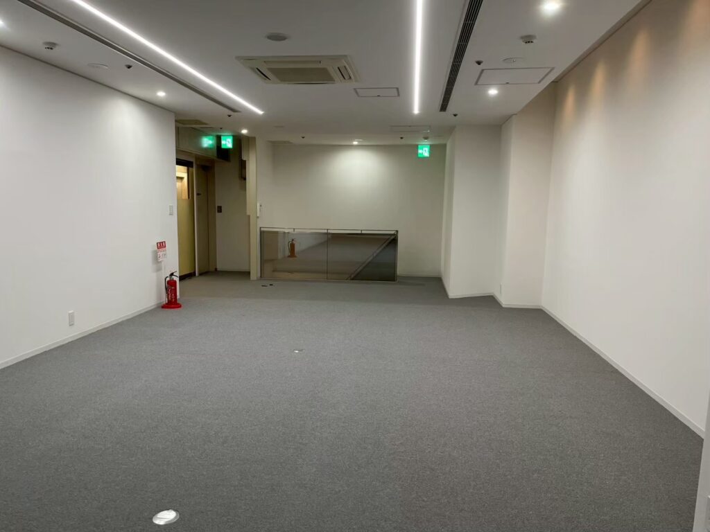 今回の工事では、オフィスビル内のツーフロアにわたる内装工事を行いました。