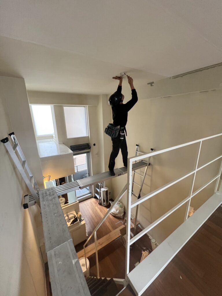 東京都中央区銀座にて、高さ5m越えの天井・壁クロス